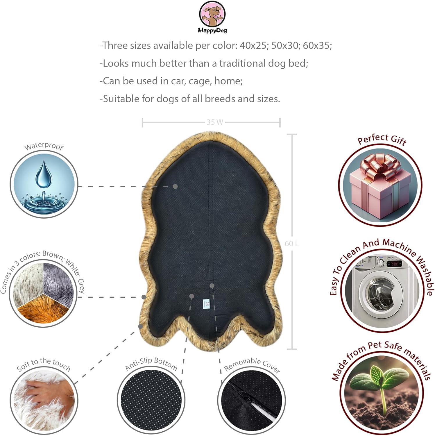 IHAPPYDOG Luxury Faux Fur Orthopedic Dog Bed, Memory Foam Dog Bed for Small, Medium, Large and XL Pets, Fluffy Pet Bed with Waterproof and Washable Cover (Brown, 60"x35")