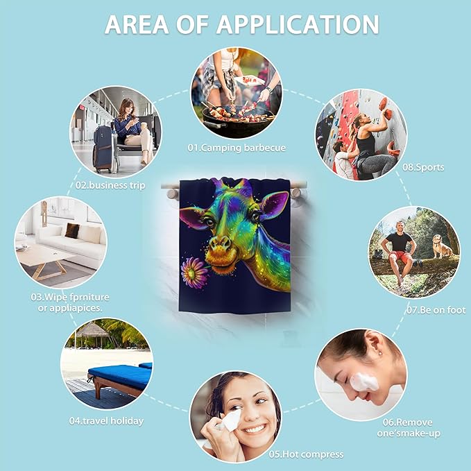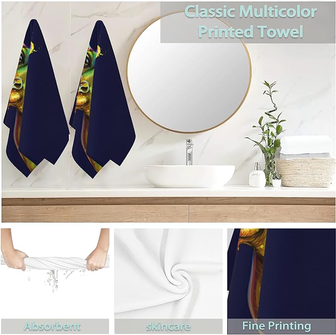 Giraffe Hand Towels Set of 2 - Colorful Fingertip Polyester Cotton Soft Bath Towels for Bathroom, Kitchen, Hotel, Spa - 14"X28"