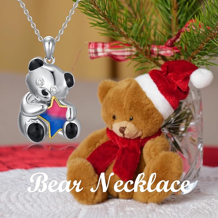 - 【Material】This beautiful 925 sterling silver bear necklace is made of the finest metal and has a high degree of polish. Bear's eyes are set with lab grown diamonds,holding a colorful star,tarnish resistant,nickel-free,lead-free,cadmium-free,safe for your sensitive skin.