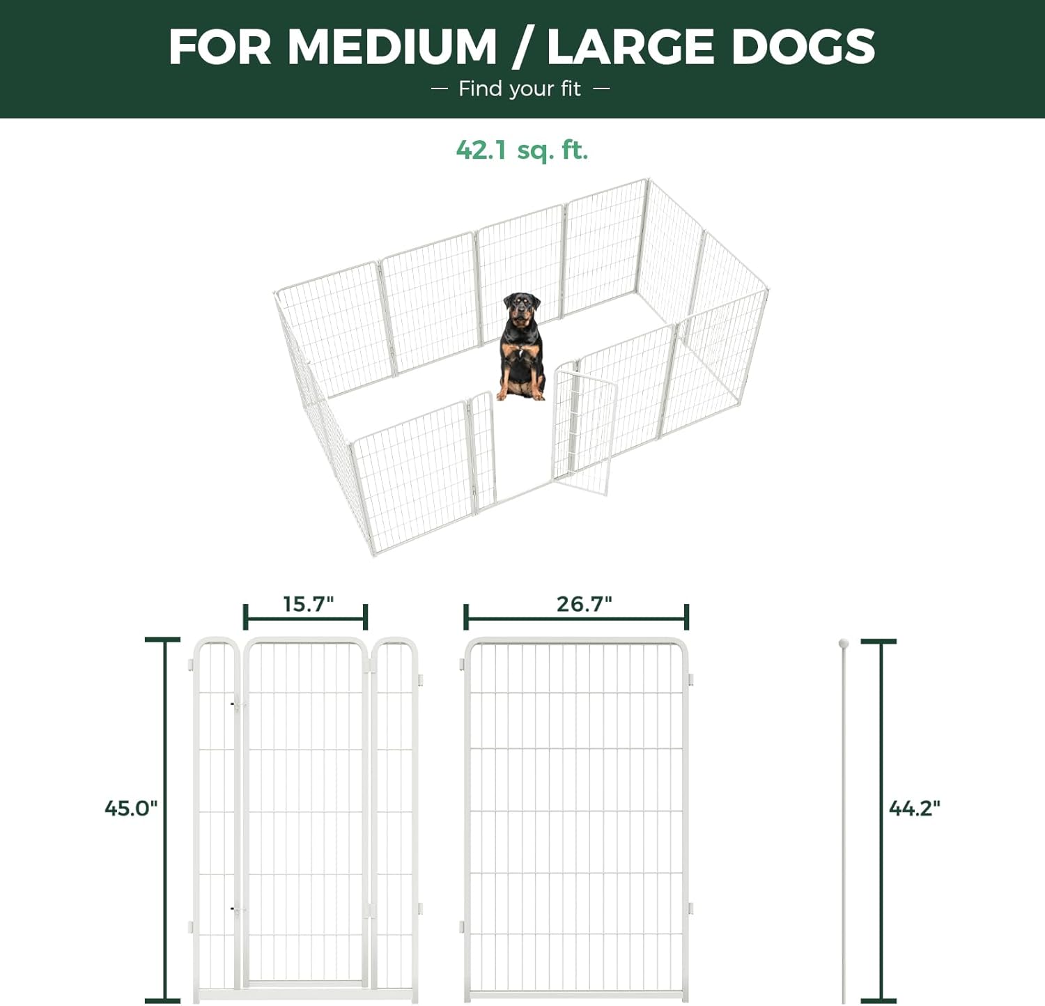 FXW Homeplus Unleashed Indoor Dog Playpen - Stress-Free and Safe Play, Heavy Duty 45 Inch 12 Wire Panels Dog Pen for Large Dogs, White│Patented