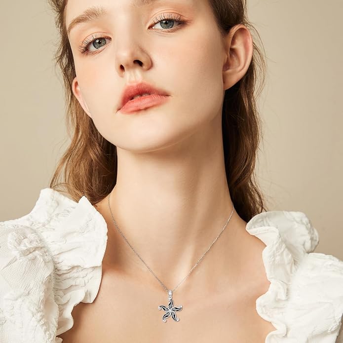 - 【Material】This beautiful 925 sterling silver starfish necklace is made of the finest metal and has a high degree of polish. Ten lab grown diamonds,tarnish resistant,nickel-free,lead-free,cadmium-free,safe for your sensitive skin.