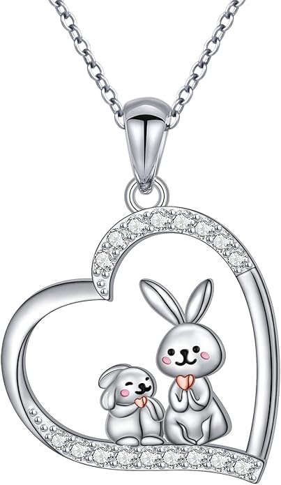 - Easter Bunny Necklace.The Easter Bunny is one of the symbols of Easter. As a fertile animal, the rabbit symbolizes the revival of spring and the birth of new life. Two cute rabbits sit in a loving heart, expressing the meaning of the design is the relationship between mother and daughter, sisters and friends, this rabbit necklace is very suitable for gift giving, and also suitable for daily wear.
