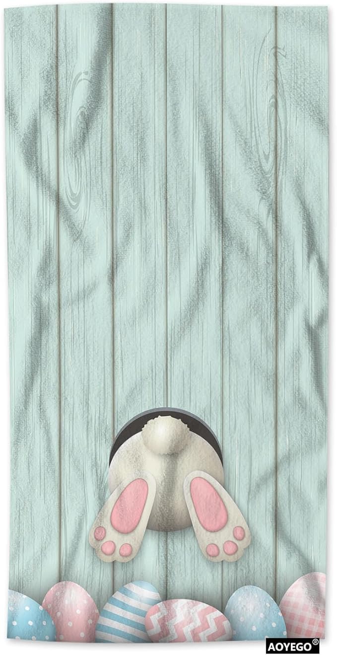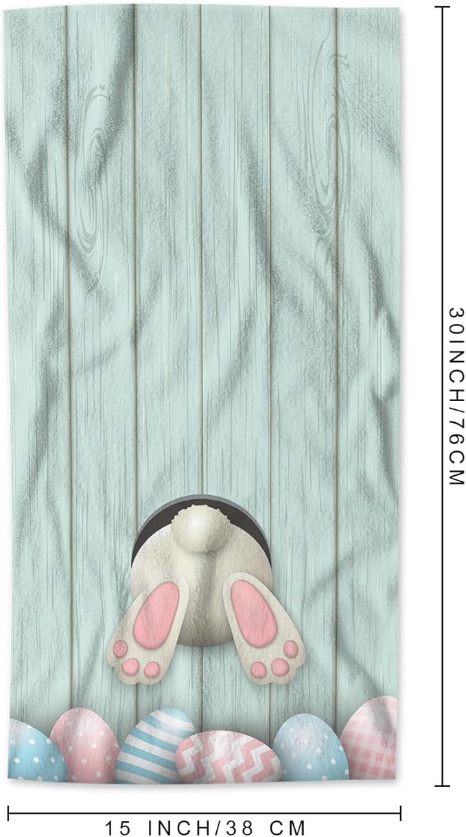 AOYEGO Easter Bunny Microfiber Towels Colorful Eggs Rabbit Blue Wood Plank Bath Towels Kitchen Hand Towels for Women Men Girls Boys 15x30 Inch