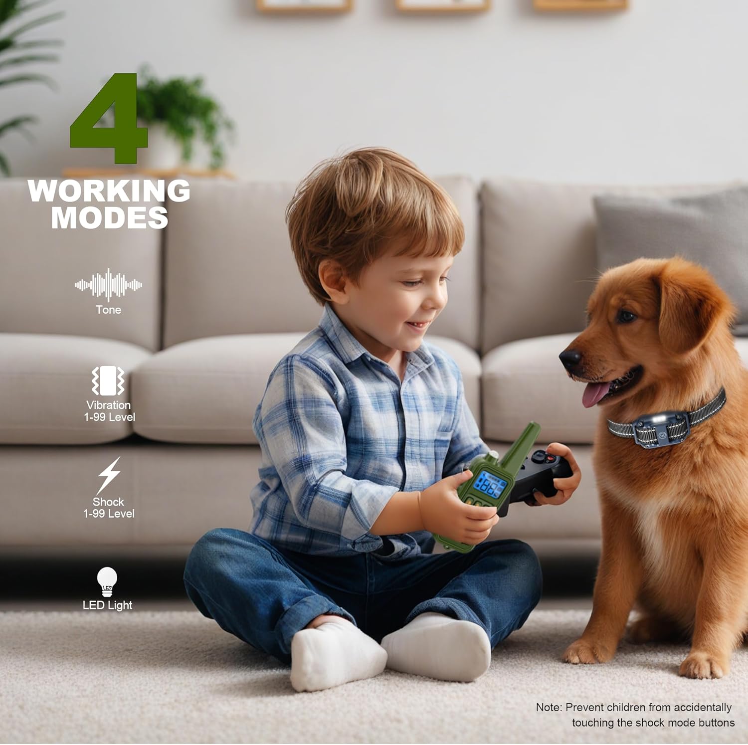 - Featuring 4 training modes: beep, vibration (1-99), static shock (1-99), and an LED light, transform your dog's training experience with Heaflex dog shock collar, our remote control is designed for convenience and security