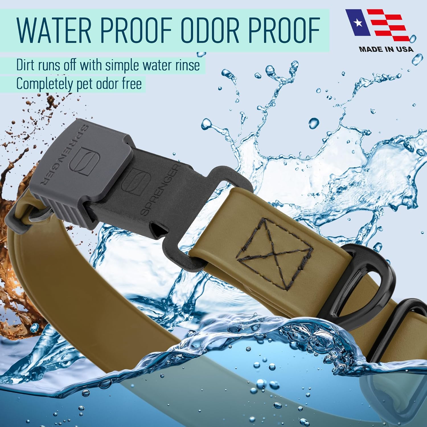 Dogline Biothane Waterproof Dog Collar with Herm Sprenger Stainless Steel Quick Release Buckle – Heavy Duty Tactical Durable Collar for Dogs – Comfortable and Safe Pet Collar, W 1" L 15-25", Brown
