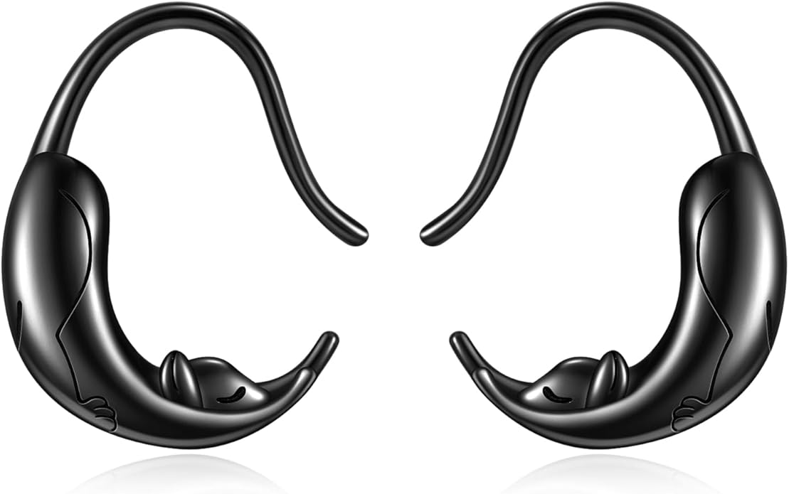 - 🐱Cat Earrings For Women: This silver cat earrings is simple and elegant. A cute black cat is stretching its body. What a cute and cozy scene! Whether worn casually or for special occasions, these sterling silver cat earrings will make you stands out and draws attention. The silver cat dangle earrings is definitely a perfect gift for animal lovers,.