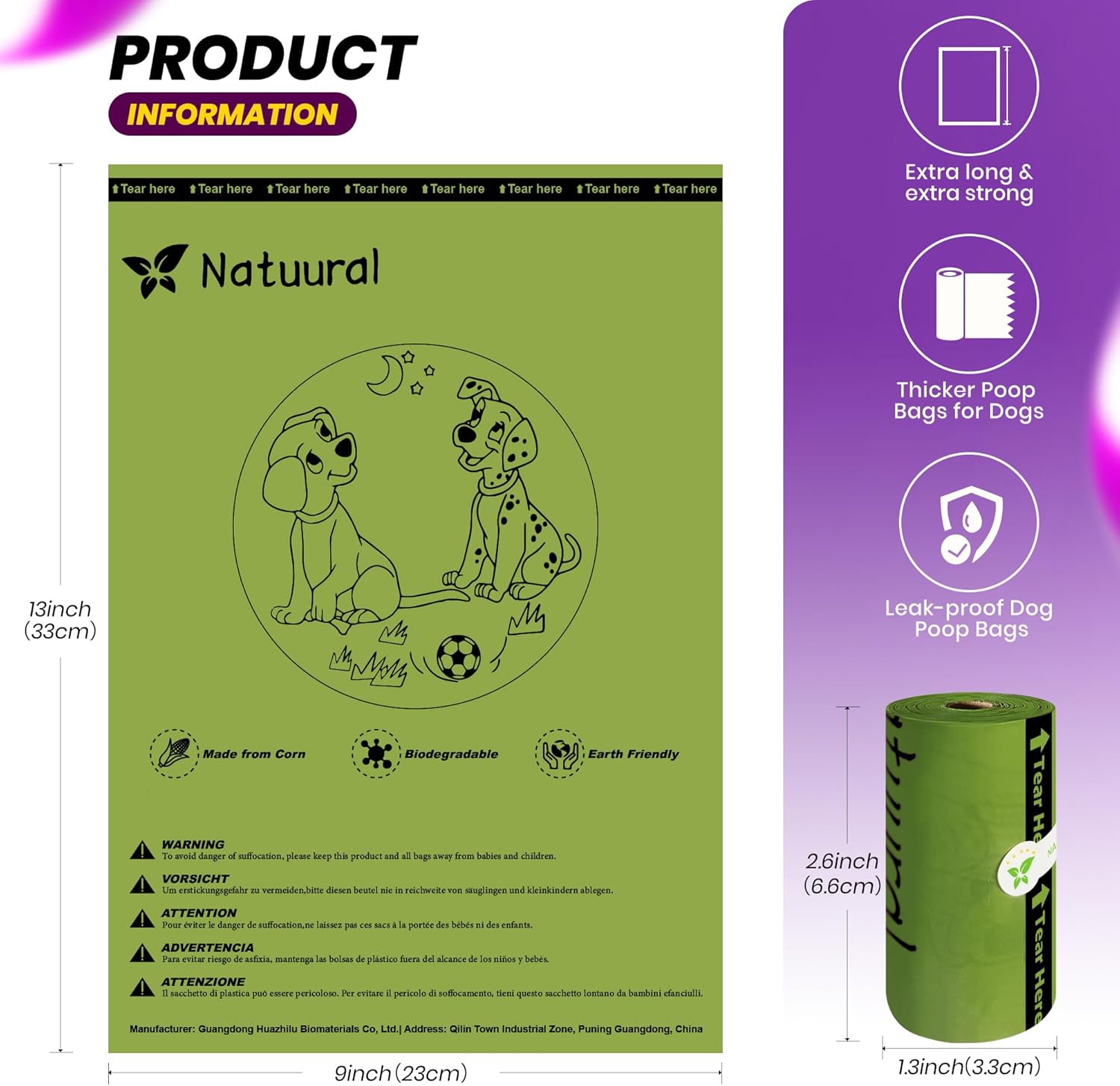 - Practical Poop Bags: Biodegradable poop bags size: 9×13 inches, Extra thick strong and easy to open, they are suitable for dogs of all sizes. Dog poop bags can also be used for cat poop cleanup, dirty baby diapers, food scraps.