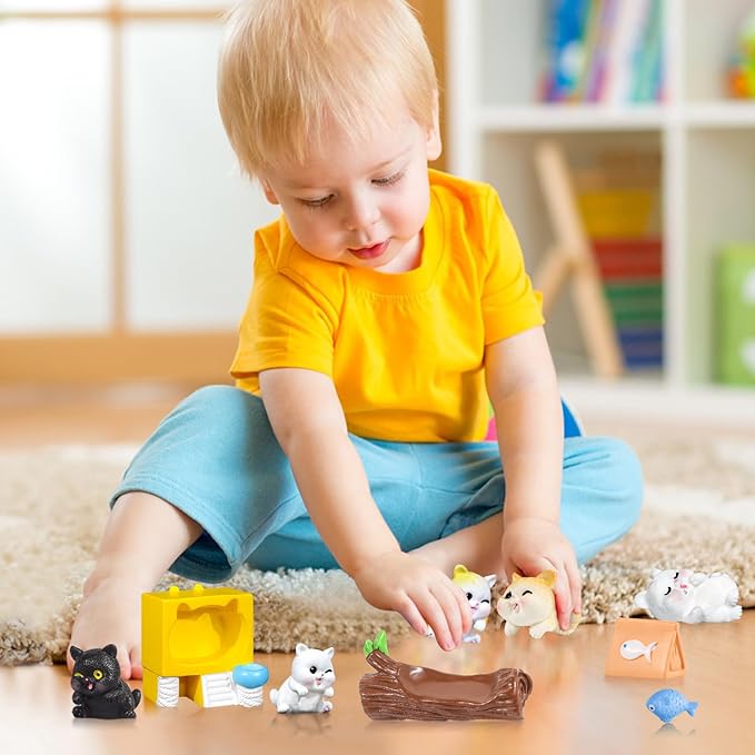 10Pack Mini Cat Figures Playset, Miniature Cute Cartoon Kitty Characters Fairy Garden Toys for Kids Birthday Baby Shower Dollhouse Easter Cake Decorations