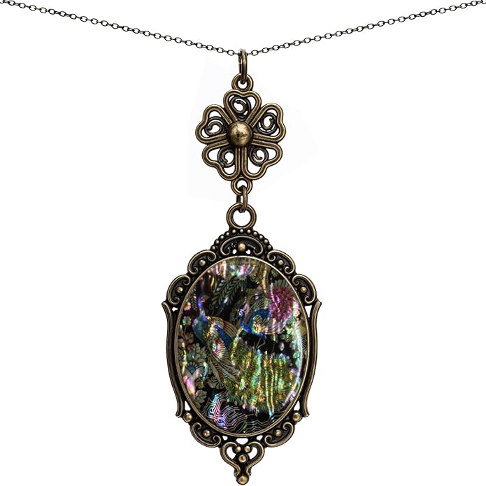 - Very good gift for present / Highest quality and unique design / Contents : Pendant, 2pc chain(18", 24"), Velvet Pouch(Deluxe pouch also help for gift use a drop of perfume and then perfect) / Material : Brass, Mother of pearl Cameo / Size : Pendant(1.49* 0.94inch), Chain(18, 24inch), Message sticker included / Weight : about 0.5 oz