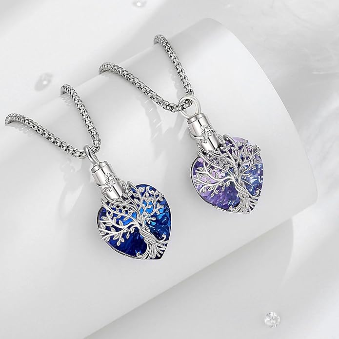 - MATERIAL: This chain urn for ashes is made of high-quality 925 sterling silver and is a practical choice for everyday life. The ashes urn necklace is inlaid with Purple heart-shaped three-dimensional Austrian crystals, which give the pendant a very shiny shine.