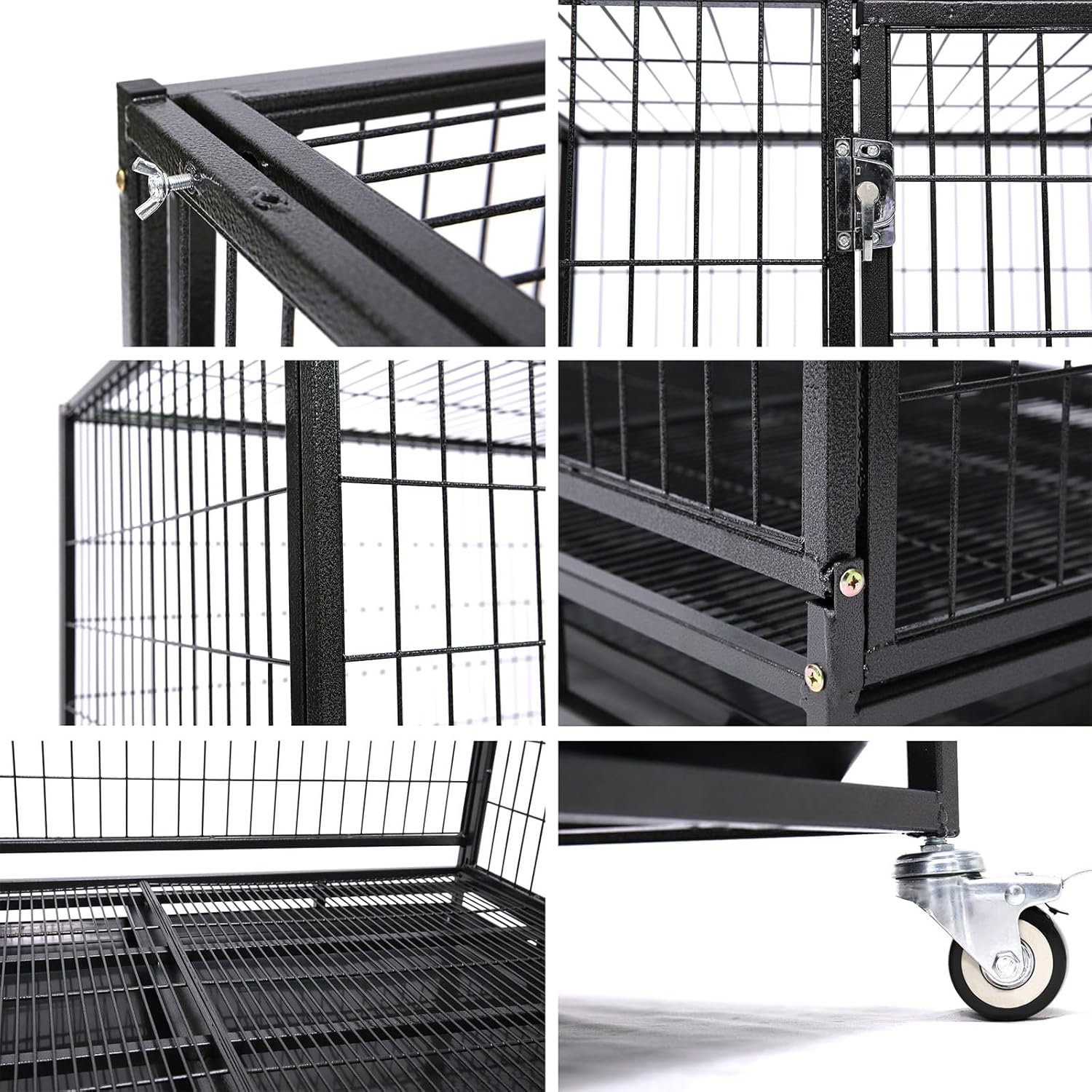- Hygienic Design with Easy Maintenance: The large dog crates include metal floor grids with paw-friendly gaps and removable leak-proof tray, making cleaning effortless and keeping your space sanitary