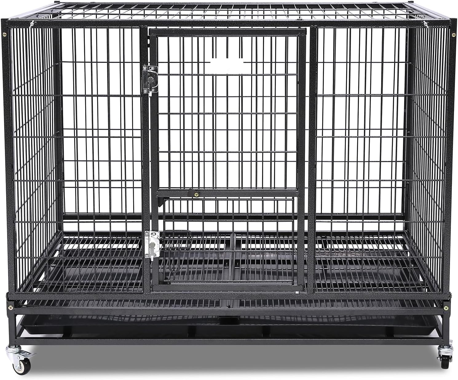 - Stackable with Same Model: Our sturdy XL dog cage is stackable with identical models, making it ideal for breeders. Measuring L43" x W28.5" x H35.5" with a 1.3" bar spacing, it’s built for dogs weighing 50–90 lbs and fits breeds up to 39" in body length and 31.5" in height, such as Labrador Retriever, Golden Retriever, German Shepherd, Akita, and Siberian Husky