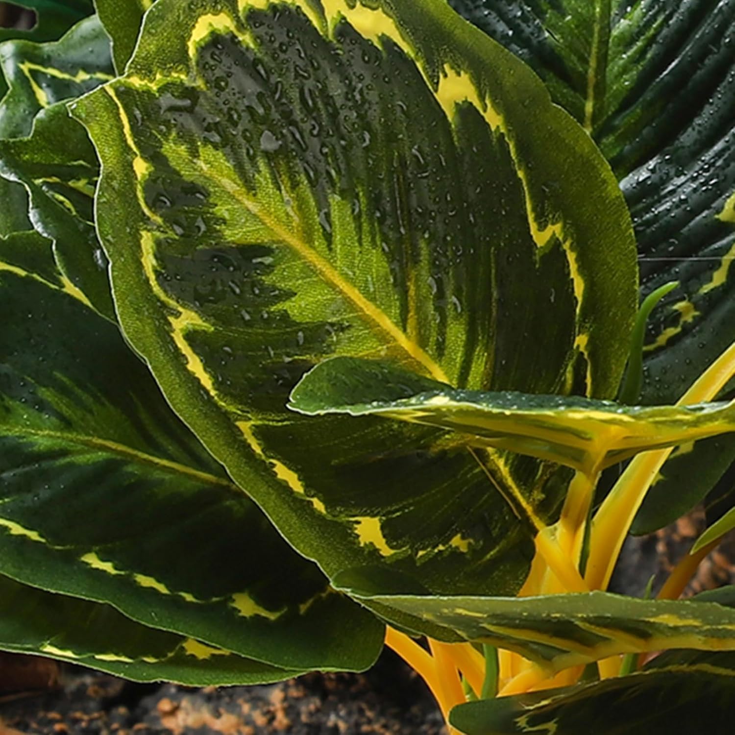 IBWell Reptile Plants - Tortoise Habitat Accessories, Artificial Spider Plant for Gecko, Ball Python, Tortoise Terrarium Decor - Calathea Makoyana B