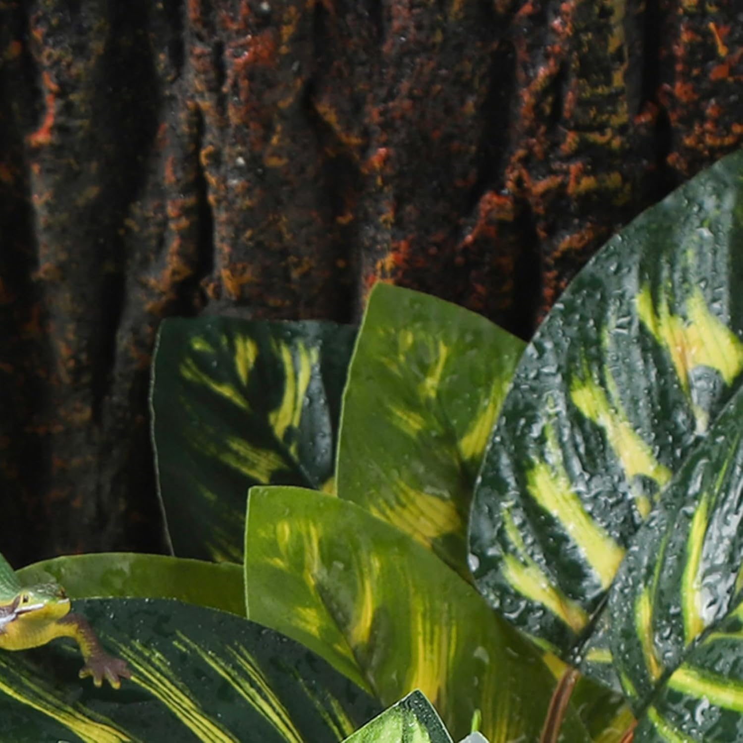 - Realistic terrarium décor – These terrarium plants not only add interest and color for your reptile terrarium, but also add much-needed and variety shade for species that are shy in open spaces. These reptile plants are great terrarium decor for gecko habitat,ball python terrarium,tortoise habitat and snake habitat. It’s also a great bearded dragon décor.