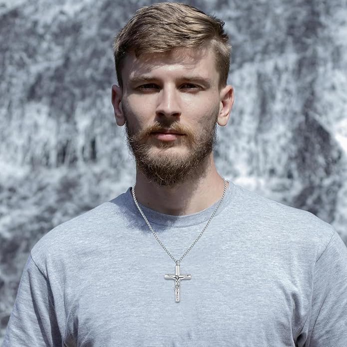 - Size: Jesus crucifix pendant: 28* 43mm (1.10 * 1.69 inch), crucifix pendant weight: 8.2 g. Retro jesus necklace is highlighting the personality, which is simple and elegant, suitable for men and women.This fine necklace is a great memorial gift for men,dad,grandpa,son,grandson,brother,husband,best friend.