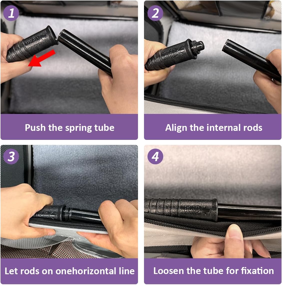 - SAFETY DESIGN- Each access has a zipper lock to prevent cats from escaping. On the side have seatbelt loops, can fix the carrier in the car. The internal metal support structure may also provide good protection for pets.