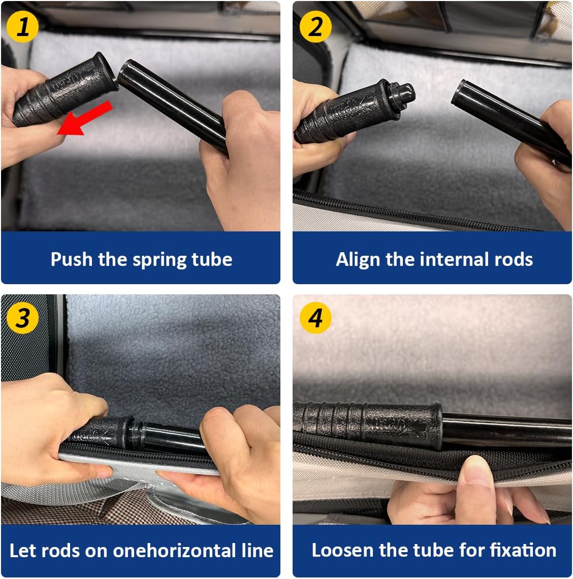- SAFETY DESIGN- Each access has a zipper lock to prevent cats from escaping. On the side have seatbelt loops, can fix the carrier in the car. The internal metal support structure may also provide good protection for pets.