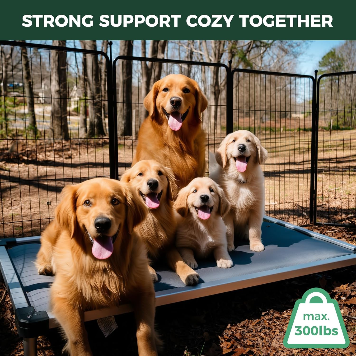 - Rock-Solid Stability: Built with a heavy-duty steel frame, this bed supports up to 250 lbs. of playful energy, with non-slip feet to stay firmly in place for even the most spirited dogs.