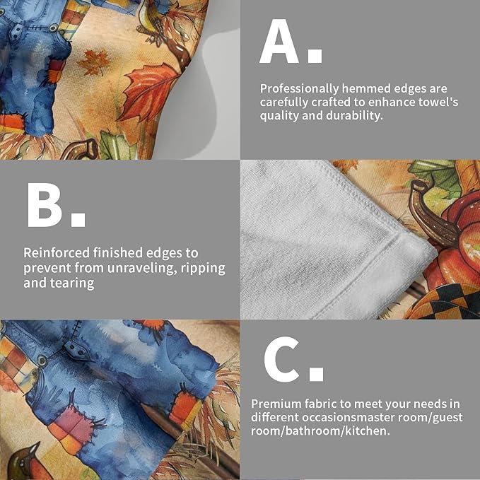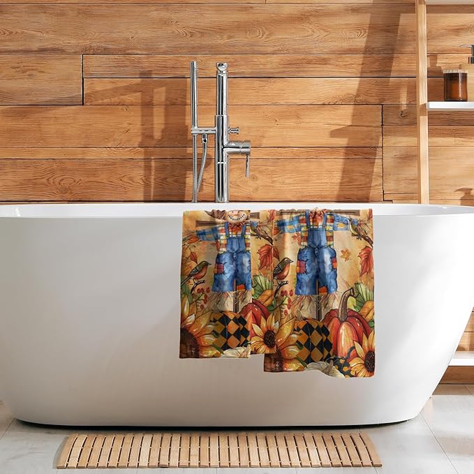 Giwawa Fall Scarecrow Hand Towels Set of 2 Autumn Pumpkin Bathroom Towel Seasonal Holiday Decorative Fingertip Towel Kitchen Fast Drying Washcloth