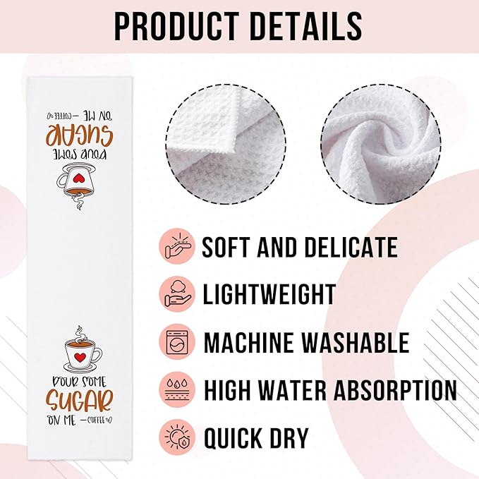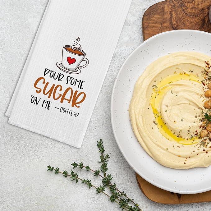 Funny Coffee Dish Towels Pour Some Sugar on Me Soft Kitchen Towels Funny Kitchen Decor Dishcloths Sweet Housewarming Gifts for New Home Hilarious Birthday Gifts for Coffee Lover Chef Friend