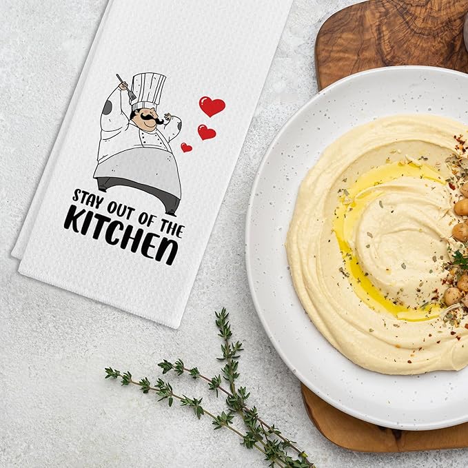 - Unique Design: Our funny kitchen towel with saying "Stay Out of The Kitchen". The simple yet cute text patterns can bright up your kitchen and surprise your family and friends. It's a perfect kitchen gift for your favourite chef.