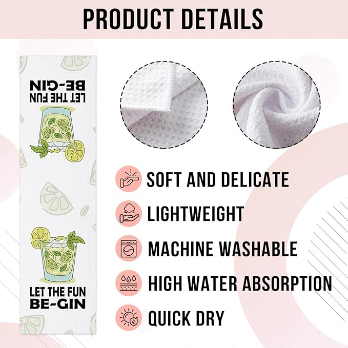 - Unique Design: Our funny kitchen towel with saying "Let The Fun Be-Gin". The simple yet cute text patterns can bright up your kitchen and surprise your family and friends. It's a perfect kitchen gift for your favourite chef.