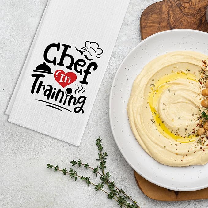 - Unique Design: Our funny kitchen towel with saying "Chef in Training". The simple yet cute text patterns can bright up your kitchen and surprise your family and friends. It's a perfect kitchen gift for your favourite chef.