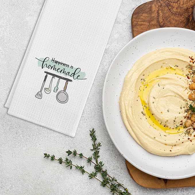 - Unique Design: Our funny kitchen towel with saying "Happiness is Homemade". The simple yet cute text patterns can bright up your kitchen and surprise your family and friends. It's a perfect kitchen gift for your favourite chef.