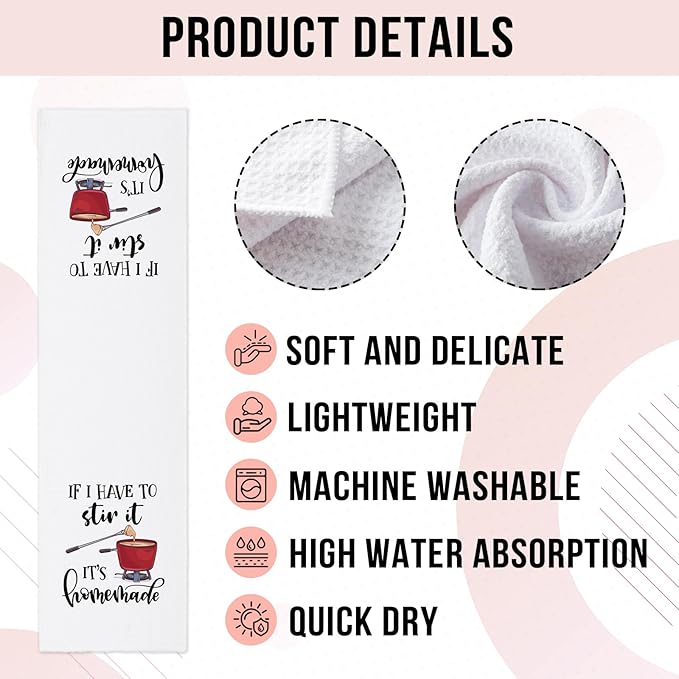 - Unique Design: Our funny kitchen towel with saying "If I Have to Stir It It's Homemade". The simple yet cute text patterns can bright up your kitchen and surprise your family and friends. It's a perfect kitchen gift for your favourite chef.