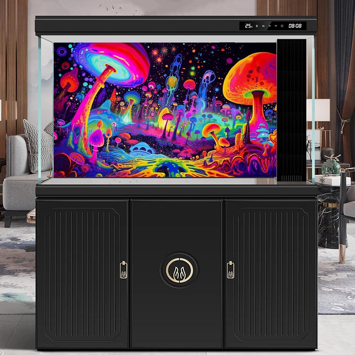 Fantasy Mushrooms Aquarium Background Abstract Mysterious Mushroom Landscape Terrarium Background Amazing Rainbow Mushrooms Theme Fish Tank Backdrop Poster Wallpaper Decorations Vinyl 72x18in
