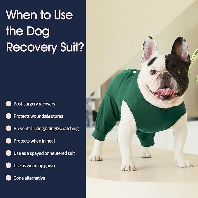 - Multi-Purpose:The dog onesie for surgery helps to prevent dogs from scratching and licking their surgical wounds,cover and protect (Post Operative) wounds,spays/neuters,sutures, skin-conditions, hot spots or when in heat,help dogs recover quickly.