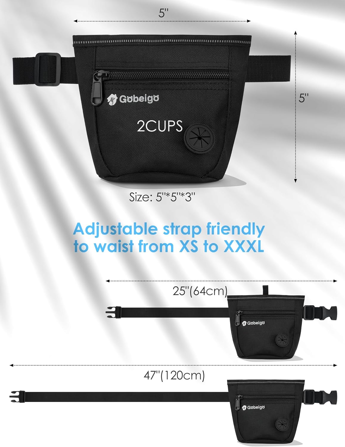 Gobeigo Dog Treat Pouch and Training Clicker, Upgrade Two Magnetic Closure to Prevent Spills, 2 Cup Treat Bag with Poop Bag Dispenser, Metal Clip Waist Belt Fanny Pack for Pet Walk (Black)