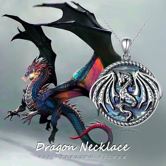 - 🐲Material🐲: Made of premium 925 sterling silver with oxidation to highlight the details, it is hypoallergenic, will not cause any burden to our skin and lose luster after long-term wear. The addition of abalone shells with mysterious colors also creates a unique and charming atmosphere for this dragon necklace jewelry!