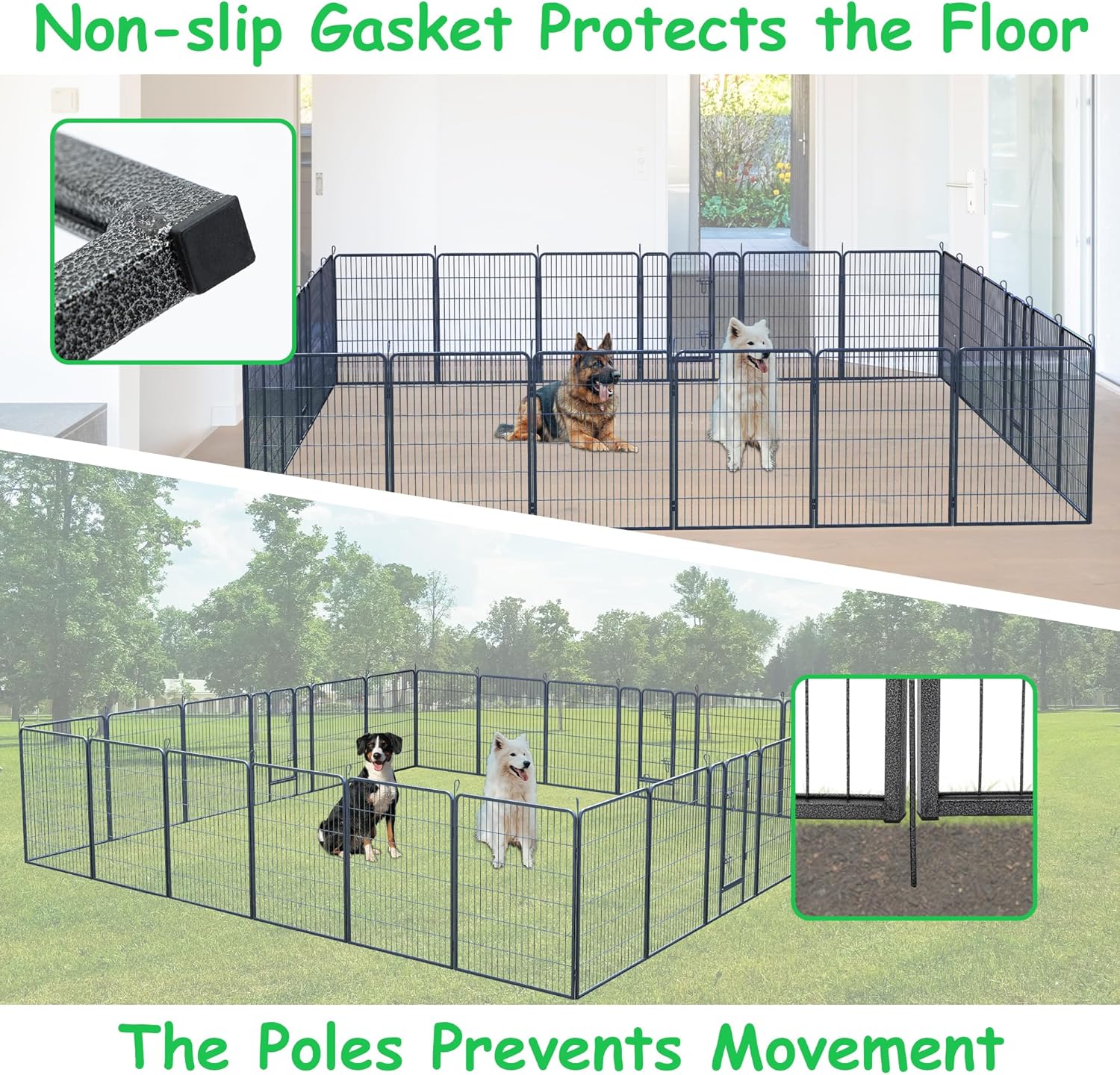 - ๐ถ๐ฉ๐ฒ๐ฟ๐๐ฎ๐๐ถ๐น๐ฒ ๐ฆ๐ต๐ฎ๐ฝ๐ฒ ๐ข๐ฝ๐๐ถ๐ผ๐ป๐:Our outdoor dog fence panels are 32'' wide and 40'' high, including 24 panels and 3 gates, allowing you to set it up in various shapes like circles or rectangles to suit your space and your pet's needs. This puppy playpen is ideal for small, medium, and large animals, and the 40'' height ensures their safety