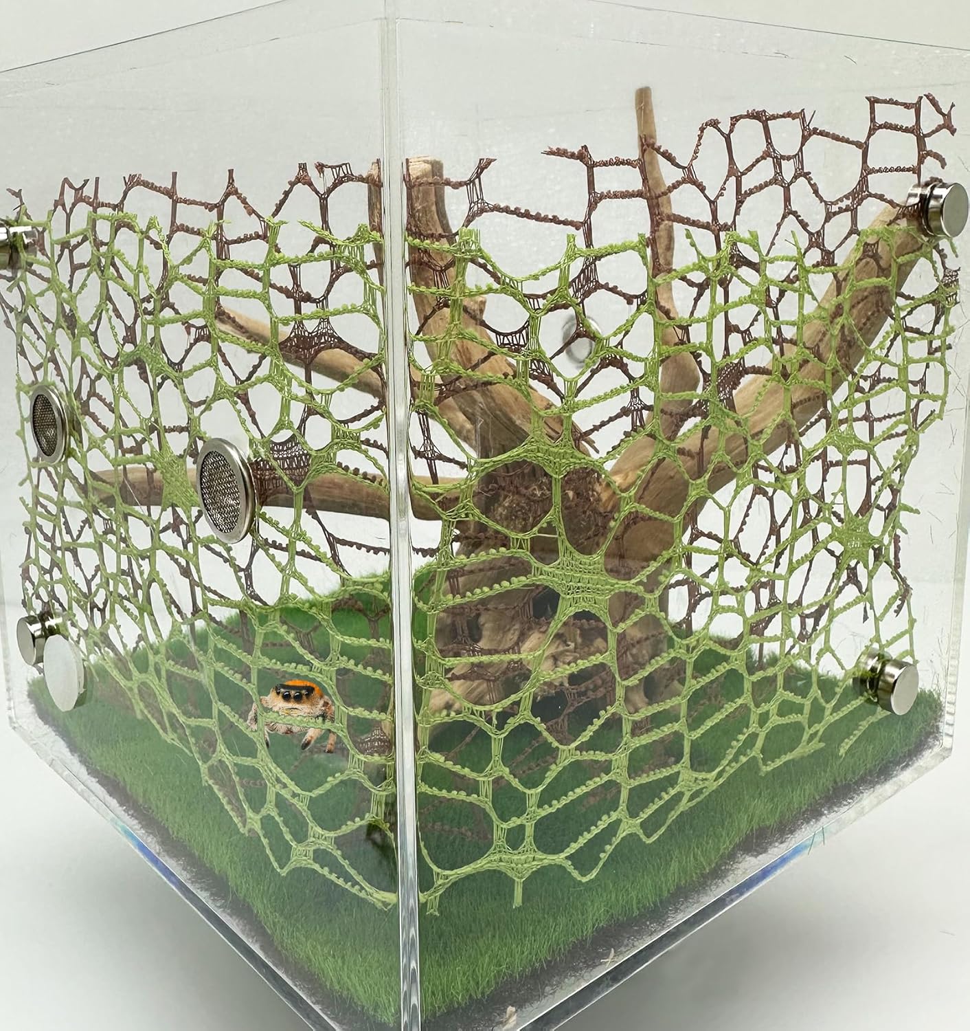 - 【MATERIAL】:This jumping spider accessories mimics the design of spiderwebs and is made of polyester.The material offers durability and is easy to cut into smaller pieces to fit your specific jumping spider enclosure needs.