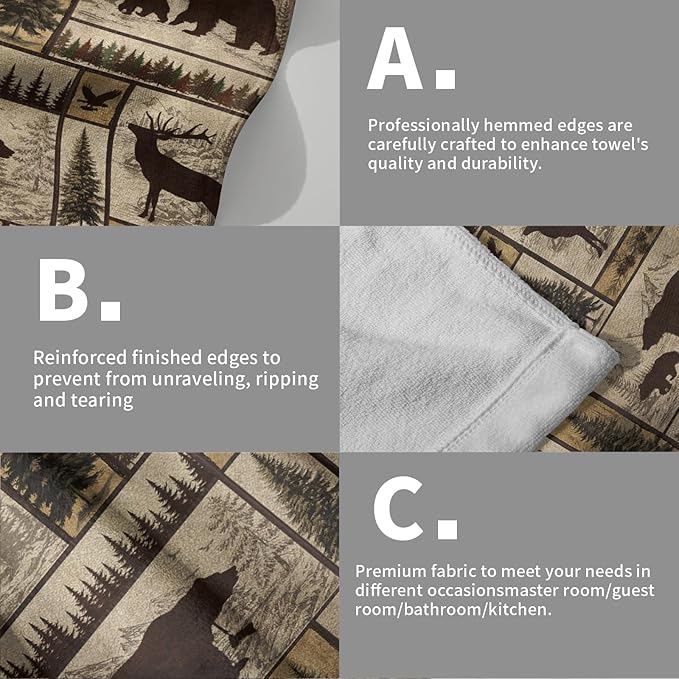 - 【Soft Material】The forest animal hand towels for bathroom made by polyester microfiber front, white premium cotton back for quick drying. Lightweight, super soft and skin-friendly.