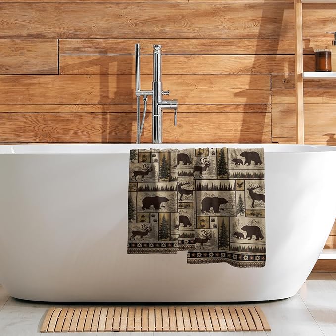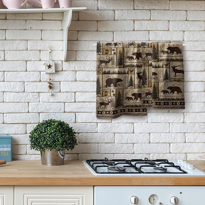 Giwawa Forest Bear Deer Hand Towels Set of 2 Woodland Wildlife Decorative Face Towels Soft Absorbent Dish Wash Cloth for Kitchen Bathroom Hotel