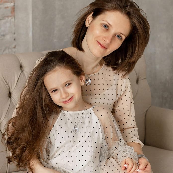 EUDORA Sterling Silver Mother Daughter Necklace for Women, Mama Son Daughter Necklace Pendant for Mom and Daughter,Mom Jewelry from Daughter Mother's Day Gift for Mother Daughter Aunt Grandma