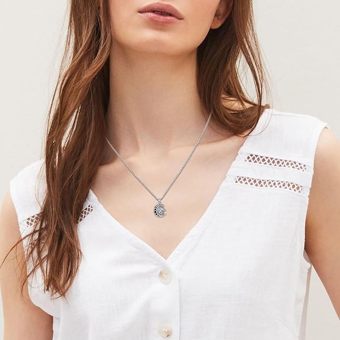 Witch Cat/Raven/Moon phase Necklace 925 Sterling Silver Celtic knot Pendant Gothic Jewelry Gifts for Women