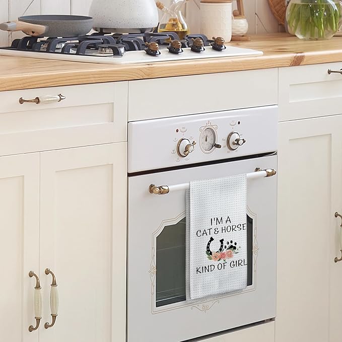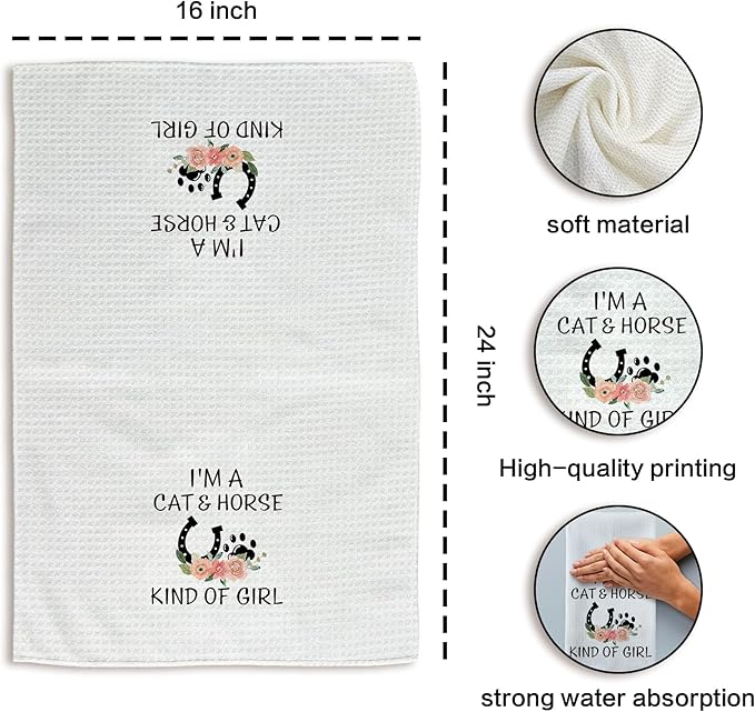 Gifts for Cat Lovers Horse Lovers Kitchen Towels, I'm a Cat and Horse King of Girl Hand Towels, Cat Gifts Horse Gifts for Girls Women Dish Towels Tea Towels for Kitchen, 16x24inch
