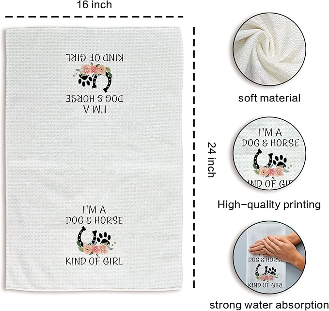 Gifts for Dog Lovers Horse Lovers Kitchen Towels, I'm a Dog and Horse King of Girl Hand Towels, Dog Gifts Horse Gifts for Girls Women Dish Towels Tea Towels for Kitchen, 16x24inch