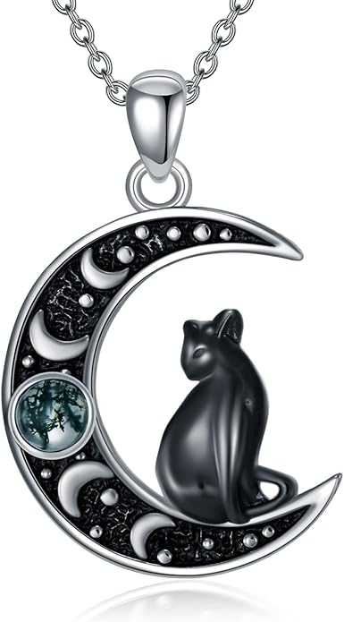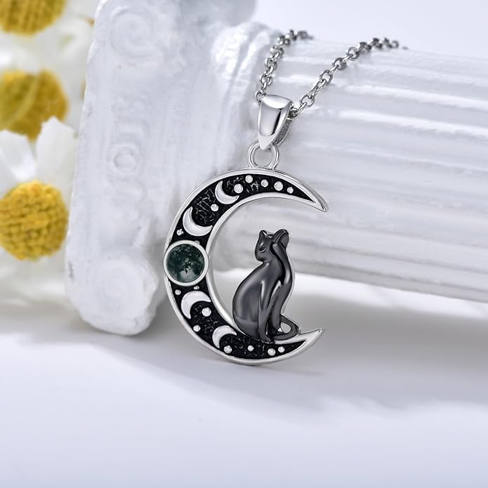 - Moss Agate Necklace Material: Cat necklace for women is made of 925 Sterling Silver with moss agate and hypoallergenic, especially for those with sensitive skin.