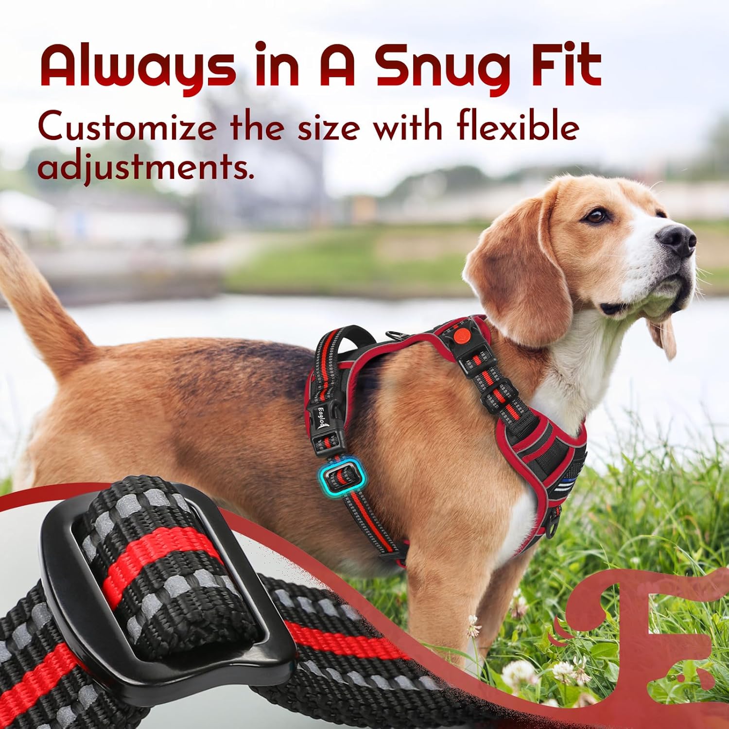 - Precision Fit: Equipped with 4 adjustable straps, the harness can offer a customizable fit, embracing diverse breeds and sizes while leaving ample room for your pup to grow. Size-L is suitable for neck girths of 17.5"-23.6" and chest girths of 20.9"-34.3"