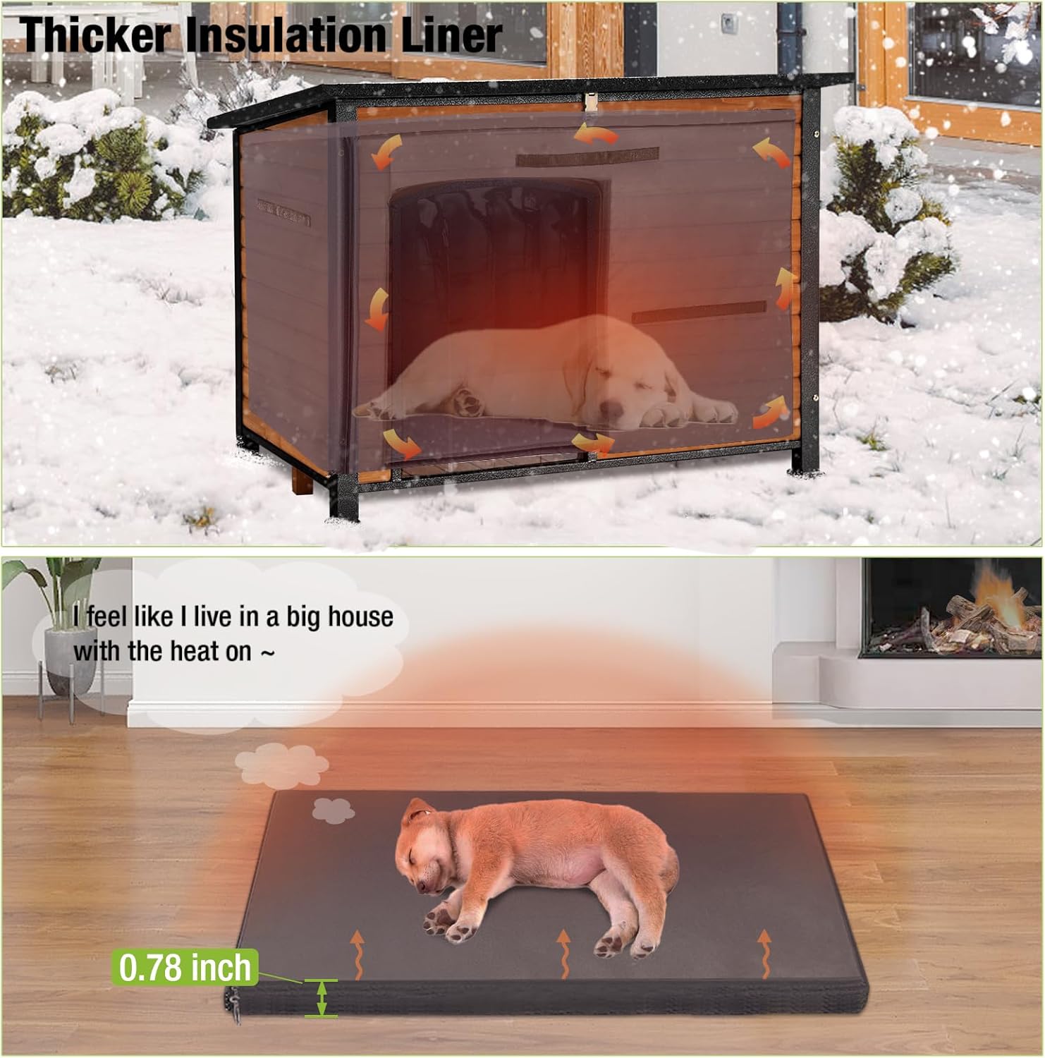 - 100% Insulated Dog House: Large dog house with 6 sides all-round thermal liner to lock the comfortable temperature. Insulation on all walls, roof and floor protects puppy from any extreme outdoor conditions