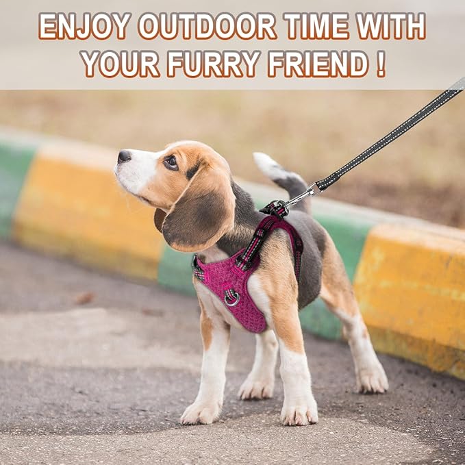 Dog Harness Step in Dog Vest Harness, Reflective Adjustable Puppy No Pull Harness Breathable Soft for Small and Medium Dogs Cats, Pink/Black, XS