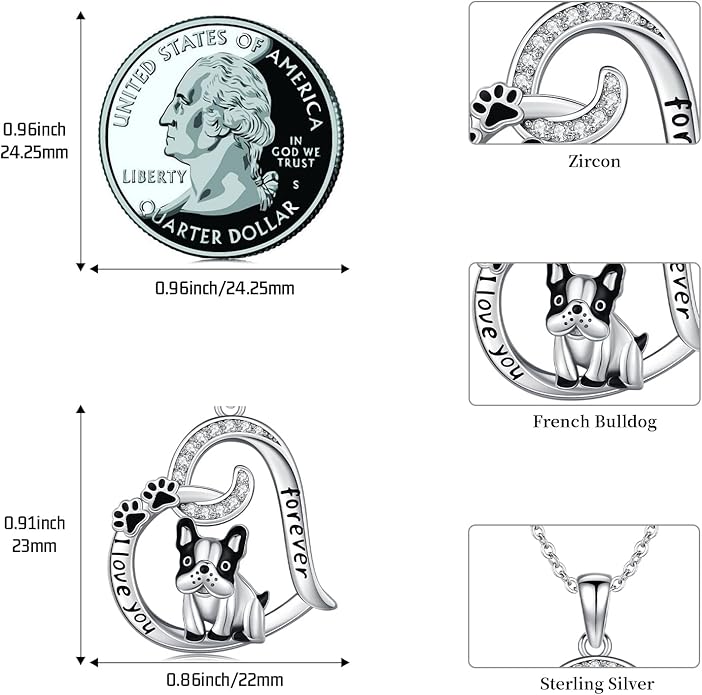 - SILVER FRENCH BULLDOG NECKLACE: French Bulldog represent loyalty, protection and bravery, and are loved by everyone. This french bulldog necklace combines french bulldog, paw print and heart, and is engraved with the words "I love you forever". It is specially designed for french bulldog lovers and dog lovers, and is a perfect gift for lovers and family