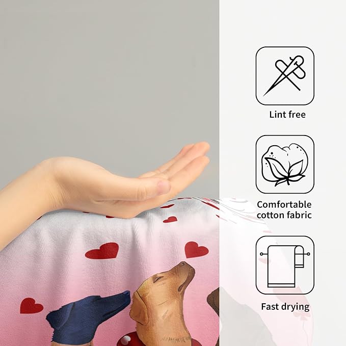 Giwawa Valentine Dog Hand Towels Set of 2 Romantic Love Soft Microfiber Absorbent Fingertip Face Towels for Bathroom Home Kitchen Hotel Spa