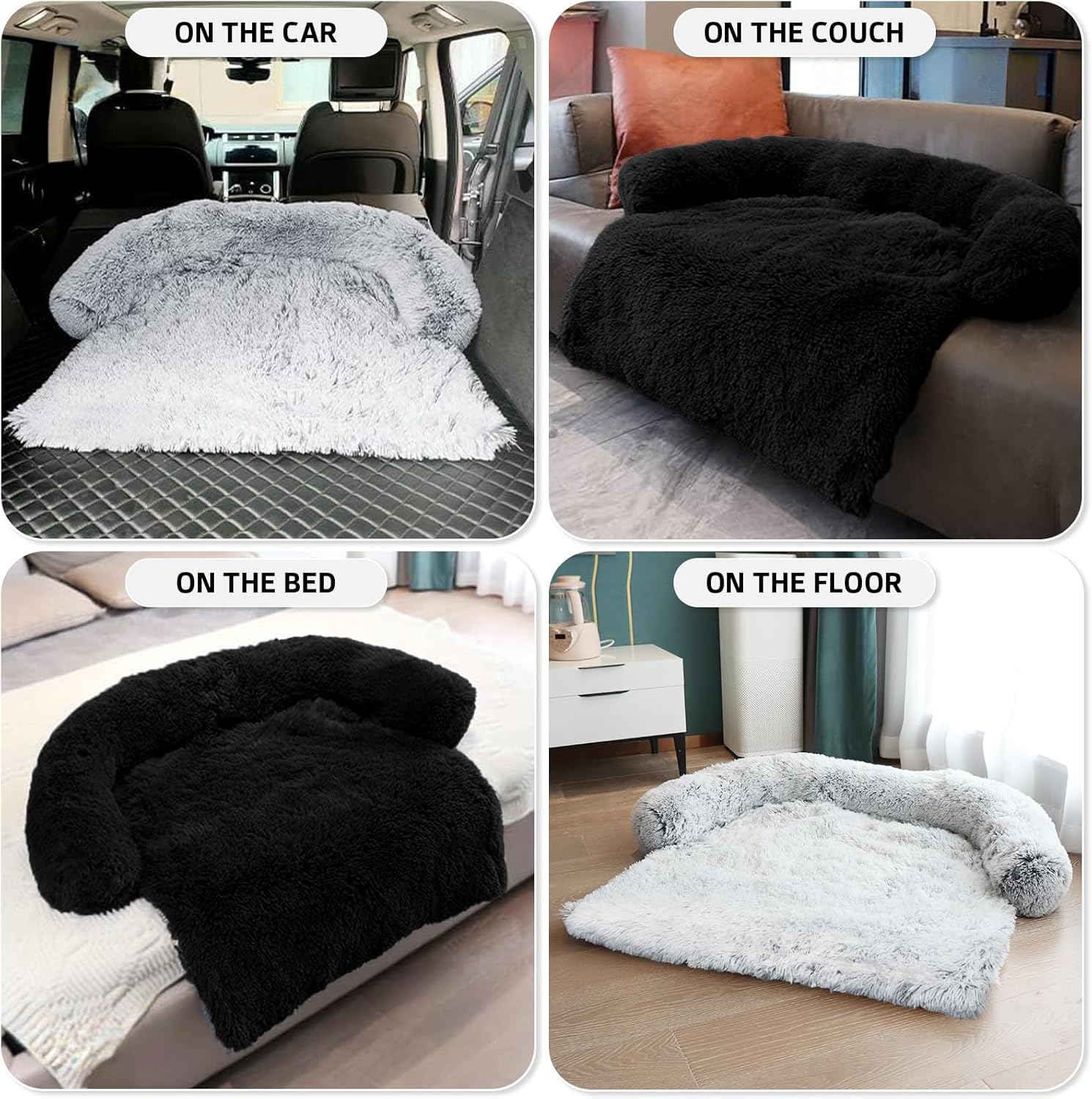 GGIB Calming Dog Bed Fluffy Plush Dog Mat for Furniture Protector with Removable Washable Cover for Large Medium Small Dogs and Cats (Small,Black)
