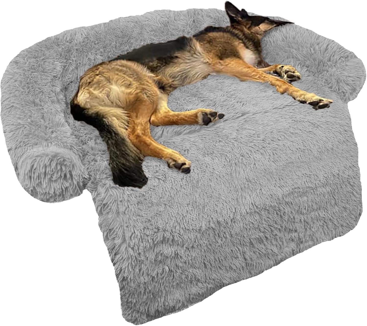 GGIB Calming Dog Bed Fluffy Plush Dog Mat for Furniture Protector with Removable Washable Cover for Large Medium Small Dogs and Cats (Large, Grey)
