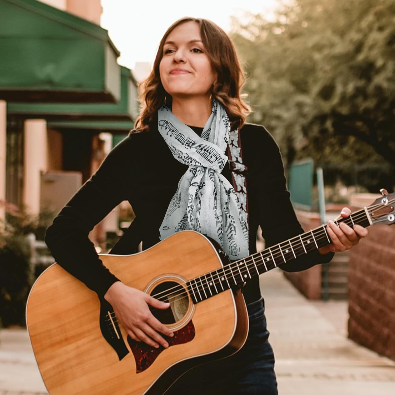 - Occasion:This scarf with a staff pattern is perfect as an addition to your costume.You can use it as a shawl to attend an concert, it would be gorgeous if you pair it with a nice dress.The colors are either matching or reverse, reflecting your unique charming